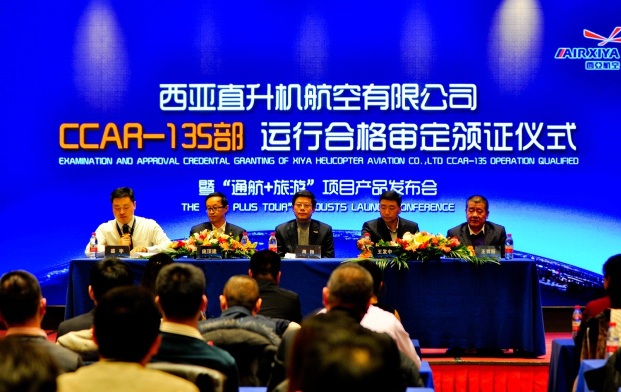 12月18日下午,民航局授予西亞直升機航空有限公司CCAR-135部運行合格證頒證暨烏魯木齊低空旅游項目啟動儀式在烏魯木齊舉行,標志著西亞航空獲得了新疆唯一的直升機非定期載客商業運營人資格,更標志著烏魯木齊低空旅游項目正式拉開序幕。民航新疆管理局副局長周翔,民航新疆管理局飛標處副處長兼西亞航空主任運行監察員王發中,民航局飛標、適航、運輸、通航、公安、航務、航衛、航安等處室領導、烏魯木齊旅游局副局長王育新、市旅游投資有限公司董事長龐頂建等領導出席了儀式。