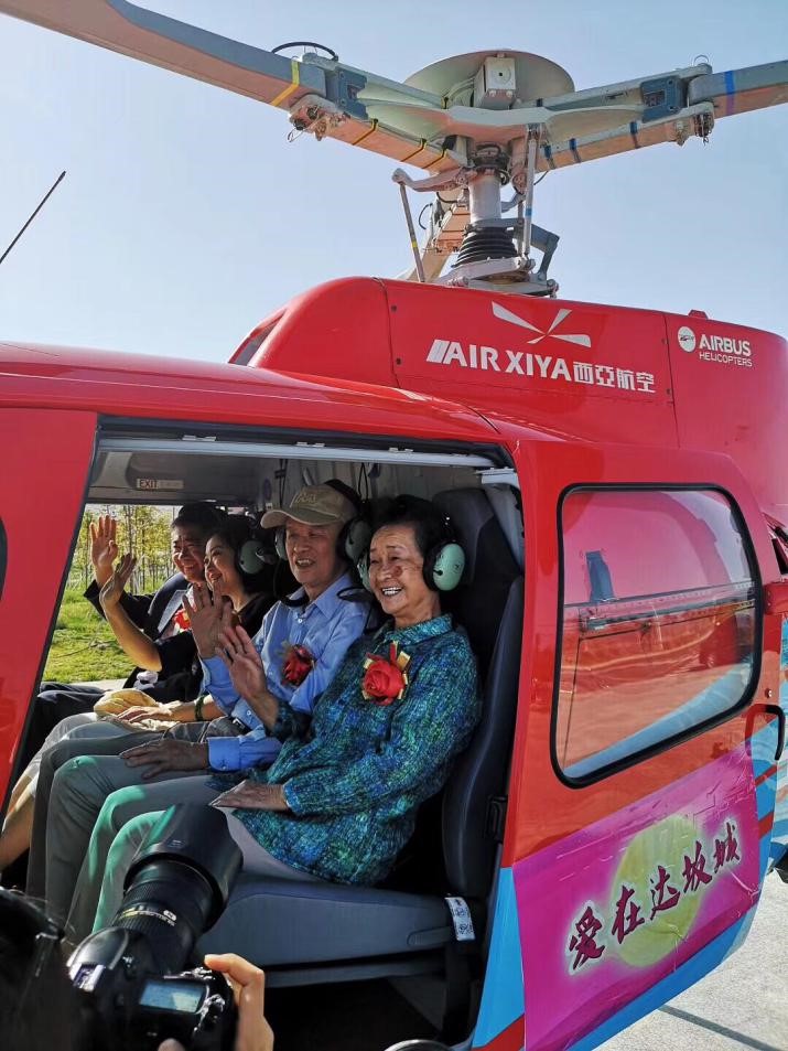 金婚夫婦79歲的尹致慶和愛人劉榮惠乘坐直升飛機后說:“從高空俯瞰愛情小鎮全貌,所有景象盡收眼底,太美了,這個七夕太難忘了。”
